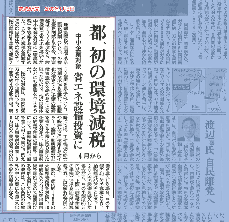¡u“sA‰‚̊‹«Œ¸ÅvȃGƒlÝ”õ“ŠŽ‘‚É-“Œ‹ž“s (09.01.05“Ç”„V•·)