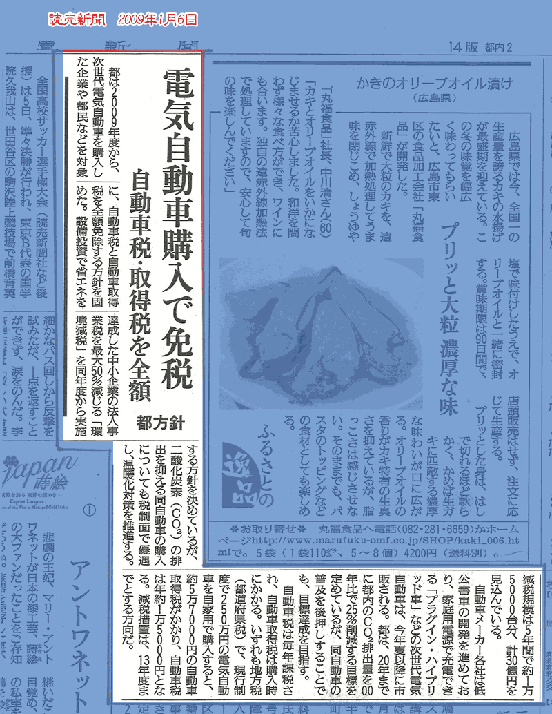 ¡u“d‹CŽ©“®ŽÔw“ü‚Å–ÆÅvŽ©“®ŽÔÅEŽæ“¾Å‚ð‘SŠz-“Œ‹ž“s (09.01.06“Ç”„V•·)